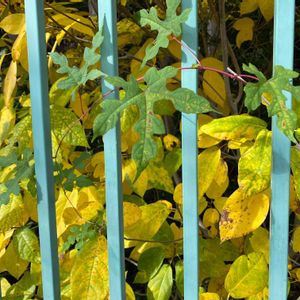 キレハノブドウ(切葉野葡萄) ☘🍎☘ 葉が大きく深裂しています。 …少し色づいてきました😊