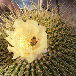サボテン ワラシー 秋は花持ちが良いですね 蜂🐝が潜り込んでますが… サボテンは自家受粉しないとか… 種は採れたことない😅