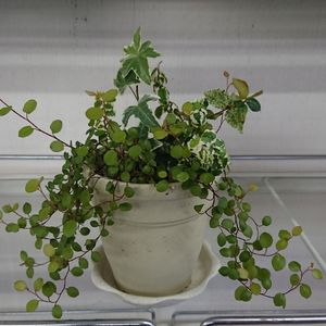 つる性植物の挿し木で小さな寄せ植えにしてみました。 根がしっかりして来たみたいでボリュームついてきました!