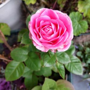 もらった花束💐の薔薇を挿し木 1つだけ根付かせて 初めて咲いてくれた この1つ🌹を楽しみたい✨
