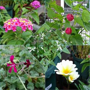 今朝の我が家の彩り 上段:ハゼノキの紅葉🍁、フウセントウワタの儚く薄いピンクの花(アリ付き)、花キリン二種。 中段:ランタナ。散り落ちた花に心惹かれる。ペラルゴニウム・シドイデス。まさに秋色☺️ 下段:コマユミの実一つ。イオナンタのわずかな色づき。ベニシタンの赤い実🍒