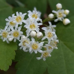 ★コゴメウツギ(小米空木)★ バラ科の落葉低木 花期:5~6月 円錐花序~散房状の花序に小さな花を多数つける。花は直径5㎜の白色の5弁、萼片が大きく、10弁花に見える。 萼片は卵円形、縁に細鋸歯と毛がある。雄蕊は10個、花弁より短い。 前に高尾山で初めて見たコゴメちゃんにウッキウキだったけど、灯台下暗し、案外近くに咲いていた😂 2025.GW 実家近くにて📱