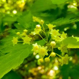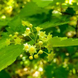 丘陵地の樹木 1️⃣ちょっとした造園コーナー 鮮やかな色のサラサドウダン🩷 林の中に 2️⃣コゴメウツギ 小さなお花が可愛い💚 3️⃣ヤマウルシが、咲きました。 地味な黄色いお花💛 4️⃣ロウバイの実 変わった形、この実茶色くなって も残っていますね💚