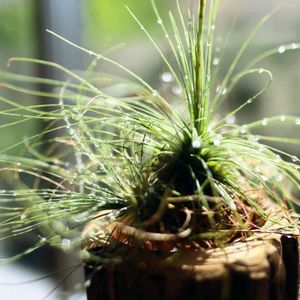 チランジア・フックシー 春にうちへきた時は、真ん丸にトゲトゲのウニみたいな姿だったが、いつの間に縦伸びしてでかくなり、にょろにょろ根も生えてきた…確実に成長してる模様。