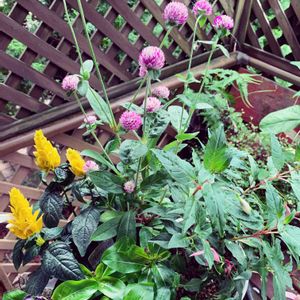 おはようございます😊 絞りの千日紅初めて見ました! 日々草ブラックベリーも好み〜♪ またまた一目惚れ 笑 ウッドデッキがジャングル化しつつある💦