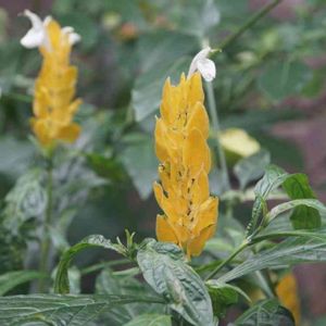 パキスタキス ルテア 茎の先に黄色の花穂をつけて苞の間から出る白い花が可愛い💛