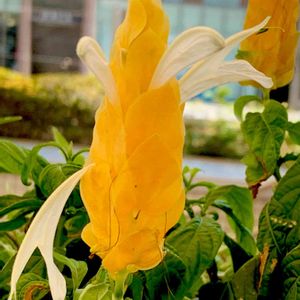パキスタキス ルテア うろこのような黄色い苞(ほうと言うらしい)と白い花がいい感じ 少し前の 小田原フラワーガーデン トロピカルドームにて 連続放出です💦 2020.02.01