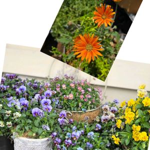 元気カラー🧡🩷🧡 3月末頃の寄せ植えになります♪︎ 🧡アロンソア 🧡バーベナ 💛🩷エリシマム ☀️善き一日お過ごし下さいませ🌼🌷💐