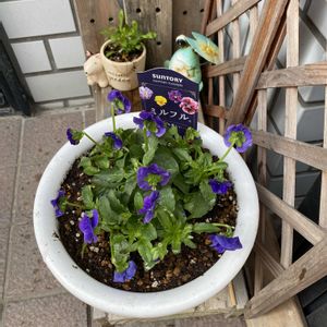 こんにちは 可愛いパンビオの鉢植え🪴作りました 色とりどりのフリフリパンビオからどれを選ぶかどれを組み合わせるか長〜い時間が経ってしまいました 鉢の色に合わせて濃ゆい感じや淡い感じを選んで、そして今年のお気に入り八重咲きストックを添えて寄せ植えにしました ①ミルフル 八重咲きストック ガルーナ ②花日和さんのフリル咲きパンジーペルクレアと八重咲きストック ③ミルフル おひとり様植え ④色変しますよって教えていただいて植えてから2週間ほど経ちました 白い色で咲き進んだらブルーになりました こんな感じかー 可愛い🩵