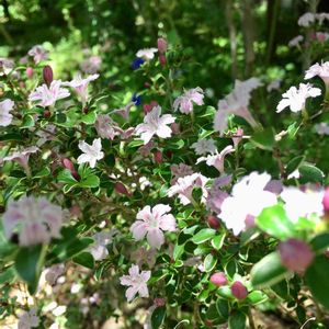 こんにちは♬ 白丁花さんが満開です。丈夫で挿し木でも増やせました💖 ピンクの小花が木陰に浮いているようでとても可愛いです🌸