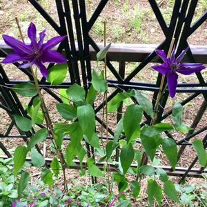 おはようございます☀ クレマチスさんが咲きました☺️ シンプルな濃い紫色です💜