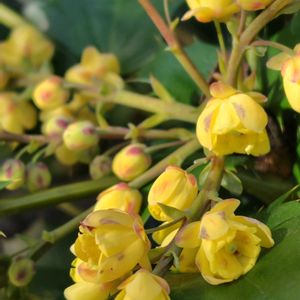 ヒイラギナンテン メギ科メギ属 常緑低木 別名はトウナンテン、チクシヒイラギナンテンなど 中国南部、台湾、ヒマラヤ原産 中国から日本に渡来したのは、17世紀の江戸時代。 庭や公園などでよく植栽されている。 花期3〜4月 春先に線状花序に黄色 い花を付ける。 花弁は6枚あり、9枚の萼片も黄色であるので、全体が花弁のように見える。 ①〜③我が家の庭に勝手に生えてきたヒイラギナンテン ④⑤菩提寺のヒイラギナンテン 🏷️月曜日にビタミンカラー に参加させていただきます。