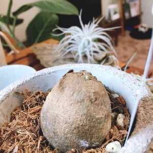 念願のステファニア ピエレイを手に入れました!根塊植物なのですが、、、まだ根がなかった😂 もしよければここからの育て方(主に根の張らせ方)を教えて頂けませんでしょうか!鉢植えに入ってたのでその土は使えると思いますが。。ちなみに2号鉢にちょうど収まるくらいの大きさです。 PS.1つ前に投稿した、チランジアが余分に入ってた件、お店のオマケでした。お騒がせしました😆