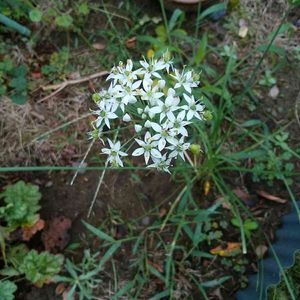 ニラ 多分ニラ ん~ん😰ニラ? 花しか印象のないニラ。 なんか葉が繁ってた気もするけれど、葉もあまりない。 ニラ?多分ニラ。 かぼちゃしか元気じゃないので、全部かぼちゃになりそうなので、ニラ入れてみました。 花は可愛いよね。 ちぎるとくさいね。