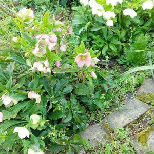 クリスマスローズ ごぶさたしています。 気がつけば、今年のクリスマスローズはすごい事に!😊 雑草生えすぎているのは、冬から春にかけての雑草は、夏の雑草の抑止力になるのか?と訳が分からない仮説に基づき生やしています。 本当はただのズボラ😆