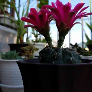 ここんとこサボテン🌵の投稿が続きますが… 4つつぼみをつけたヒカダマ。 今日は、3つ目が咲きました。 ヒカダマの後ろにあるのがニョロニョロのケンシロウ。←呼び名。 このケンシロウもつぼみがついてます。 順番に花が咲くのでうれしいもんですね。