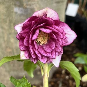お庭のクリスマスローズ開花⑤ フルールドノエル ダブル やっと一番花が咲きました🌸 ですが地面スレスレで開花してお顔がよく見えず😅 持ち上げてみると昨年はキレイな丸い形でしたが今年は形が歪💦 しかもダブルのはずがシングルっぽくなってます😨 2番花に期待かな💦💦