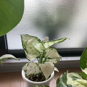 アグラオネマ三姉妹。 左から、ホワイトバレンタイン、ロッソ、ロタンダム。 葉の色も葉脈も絵に描いたよう。 しっかりくる鉢が見つからず、結局、ガラスにハイドロボールで植えました。 今のところ、順調に成長中。 アグラオネマは本当に丈夫で育てやすい✨✨
