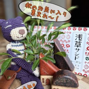 ほんの少し 秋めいた昨日と今日 ねこ吉くんの周りに お気に入りの 浅草サンド。 美味しい!! 秋のバッグ。 新作の木のおうち。
