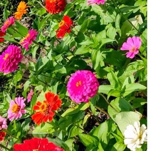☘️今日の花~百日草🪴 ❤️🩹ヒャクニチソウ色々 👍ヒャクニチソウはキク科の一年草で、初夏から秋まで長い期間花を咲かせるから百日草☘️ ✨️庭に…たくさん咲いてます❣️