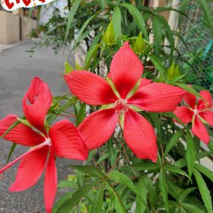 今日のお目覚め👀🤗 🌿🍁モミジアオイ🍁🌿 ✍️タチアオイと同じアオイ科で、葉がモミジの葉に似ることから付いた名前だそう。 🪴鉢植えなのに、めっちゃ高く咲いていて❣️ 真っ赤なランタナと 🌿昨日、近隣で出会いました👏👏🤗