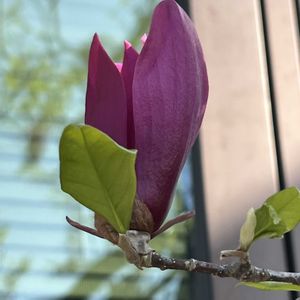 おはようございます☺️PEKO地方曇り空☁️モクレン花咲き出しましたよ♥️💜樹齢50年位の木 本当だったら♥️💜お花がいっぱい咲くはずなのにチラホラ💦今年も奴らに🐧🐦🦅食われました😱