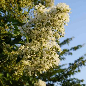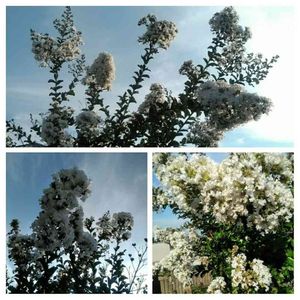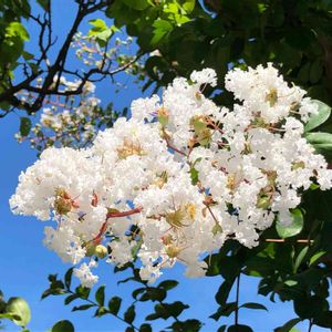 酷暑の青空の下でサルスベリの白い花が咲いていました。(´∀`*)
