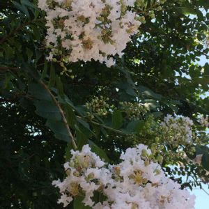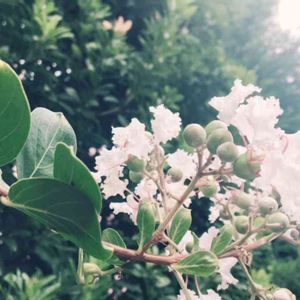 サルスベリ 台風が接近していた火曜日、 お出かけ先で白いサルスベリの木に出会いました。 時々、強い風に乗って白い花びらが舞い、 さながら、桜のようでした✽.。.:*・゚ ✽.。.:*・゚ 8/7 pic 藤沢市民会館前の公園にて