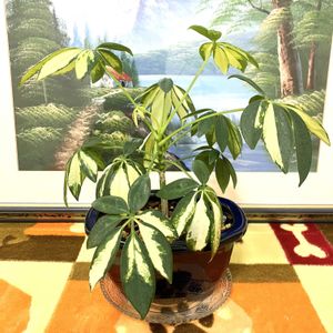 こんばんは。Room plants 小さな観葉植物インテリア シェフレラ(植齢4年) 1枚目今回・2枚目前回 緩やかに成長しています 穏やかで素敵な夜の旅をどうぞ