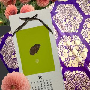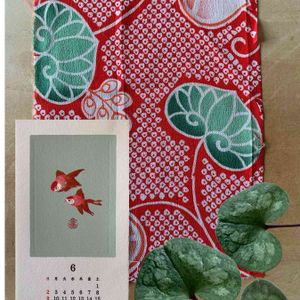 シリーズ 古布の花 6月 水無月 新緑に包まれた5月が終わり6月に入りました。 水無月は旧暦の6月が梅雨が明けて日照りが続く頃なので、水が枯れて無くなる月だからという説、 又は、水無月の「無」は「の」にあたる連帯助詞「な」であるため「水の月」という説があるようです。 今月の古布は一越ちりめんの端切れ 16cm×23cmの小さなものです。 描かれているのはカンアオイ。 庭のカンアオイの葉が綺麗になりました。 布 絹 暦 越前和紙 絵は金魚 新月 6日 満月 22日 花 カンアオイ(寒葵) 小さな庭のカンアオイ。 水無月もよろしくお願いいたします。