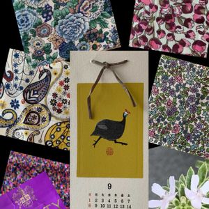 シリーズ古布の花🌸 9月 長月 早いもので暦の上では秋です。 日の入りが早くなり夜が長くなります。「夜長月」が短くなって「長月」となりました。 今月はリバティプリントの布を用意しました。 2013年5月、親友T(パッチワークキルト教室教師)からのイギリス土産です。 リバティプリントとは 1874年に創立されたロンドンの リバティ社製のプリント柄の事。 当初はアールヌーヴォー様式の 緻密で曲線的な小花柄がデザイ ンされましたが、幾何学模様や ペイズリー柄などの展開もあり。 布 タナローン 非常に細い糸使用の上質木綿 暦 越前和紙 絵はホロホロチョウ 新月 3日 満月 18日 大河ドラマ「光る君へ」では いよいよ越前和紙にてまひろ が「源氏物語」を執筆。 花 ウエストリンギア•スモーキー (オーストラリアローズマリー) 小さな庭 鉢植え 9月 長月もよろしくお願いいた します。