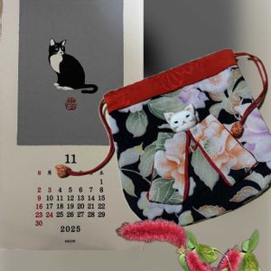 シリーズ 古布の花 11月 霜月 寒さが深まり霜が降り始める 時期、寒くなりました。 今月は猫三昧です。 古布は猫のついた巾着。 花は通年柄でしょうか、芍薬、 牡丹、梅も? 20年ほど前にパシフィコ横浜の 世界パッチワーク展に行った時 に買い求めた物で一腰縮緬です。 古布 絹 暦 越前和紙 ネコ(猫) 満月 5日 新月 20日 花 キャッツテール(猫の尻尾) 窓辺 霜月もよろしくお願いいたします