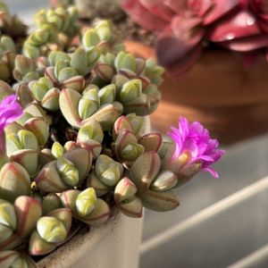 今日は、寒かったですねー。 あさって、しあさっては さらに冷え込みますね(特に あさって🥺) 植物🪴たちも心配だわ。避難させるところもないし。 今日は、七草粥を食べました。 娘が楽しみにしてて、ガッツリおかわりして食べました🥢 今日の写真📷は、ベランダより。載せそびれてたコたち。 📕1枚め(去年12/8撮影) 左上↖️ ゴーラムちゃん。 そこそこ元気です🙂 右上↗️ 虹の玉ちゃん🌈 去年12/24の3枚めの下⬇️ に載せたのと かぶってしまってます🙇♀️💦 左下↙️ 森村万年草ちゃん。 紅葉してるのか枯れ気味なのか😅? 右下↘️ もみじ祭りちゃん。 去年の夏 ピンチで もうダメかと思ったけど、なんとか生き残って 1株 根づいたのかな、ミドリン🟢になりました。 📕2枚め(去年11/17撮影) 樹霜(じゅそう)ちゃん。 花芽がついたのでカット✂️して土に挿してます。どうなったかな😓?