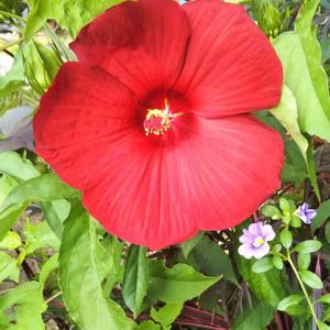 タイタンビカス🌸 同じ花は咲かないと聞いていたけど 去年取れたタネを5月に植えてみたら、咲いてくれました〜(๑>◡<๑) 成長はやっ! お母さん花より少し小さめだけど、全然オッケーだわ👍