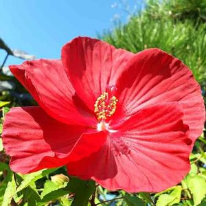 タイタンビカスの花びらはプリーツスカートが開いたみたいに見えませんか?暑い日差しの中でもとても元気に咲いていました🌺 フラリエにて( ˘꒳˘)。o○(