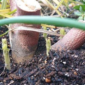 おはようございます。ニョキニョキと新芽が出てきました!!今年も大きな花が見れるかな~
