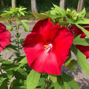タイタンビカス^_^ 今年からチラホラ見かけるタイタンビカスの矮性品種、その名もタイタンビカスキッズですね。 夏がやって来たな〜って感じがします☺️