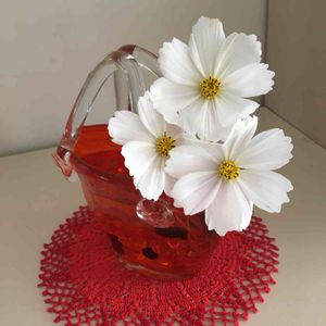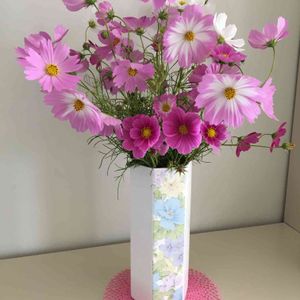 大好きな 手作り花瓶に❤️ ♡白のコスモスを 入れ 玄関に♡🌸