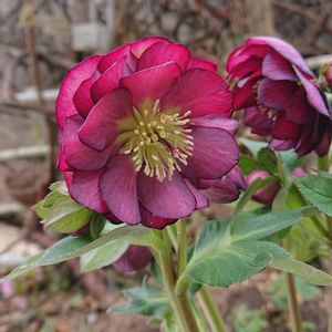 クリスマスローズ ダブル咲き 綺麗なベイン(脈状の条班) 咲きました❤ 鉢植えは車庫の中に避難して不織布も掛けてます😅