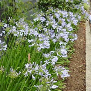 こんばんは~🤓🪐 道路脇の細長い花壇❗町内会の人が世話をしている様子🙇❤️🧡💚 車を止めて❗暫し鑑賞👀👁️ モリモリと咲き誇る綺麗な花 💙アガパンサス💙 🚐💨ドライブ🎶&👟ウォーキング🚶の途中🥳 R4年6月15日📸撮影