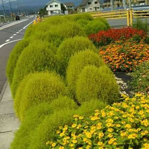 朝晩は過ごしやすくなりましたが日中はまだまだ暑~い☀️ ショピングに行く途中の花壇コキアがもりもり 山口県のガードレールは夏みかん色‼️‼️知ってましたか❔ (国道の一部と県道)