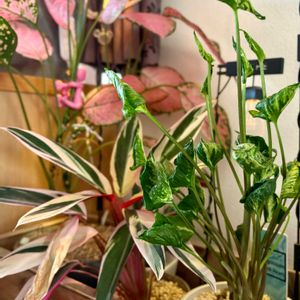 こちらも三ツ星品質モニターで育てているシンゴニウム・シュリンクハートです 奥はアグラオネマとストロマンテ