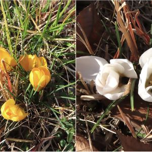 築山の日だまりで「クロッカス」が咲き始めていました。 パチリ・パチリ