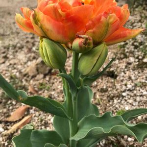 💚🧡🧡🌷🧡🧡💚 おとといのチューリップ こんなになりました〜 一本の茎の後ろに、もう一つお花あるんですよ 小さいのが😅 同じチューリップもう一つあって、同じなんです チューリップってこんなの?
