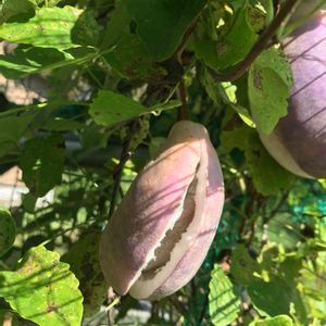 知り合いの農園のpic その② アケビの実(未熟) 形が面白いです😆 完熟したらどんな感じかなぁ💚