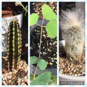 おはようございます☀ あまり登場しないサボテンさん載せてみました🌵名前はわかりません😆 おじいちゃんみたいなのと、何度も転かして鉢から抜ける細く長いサボテン💦 ごめんね🙏どちらも可愛いです❤️ 真ん中のpicは、2度目に芽を出した🌱アケビです順調に育ってますよ(^o^)いいお家を探しておかなくては!地植え出来ればいいのだけれど、場所がなくて鉢になってしまう。残念💧😵