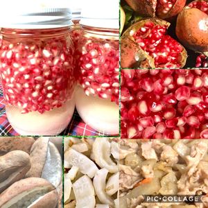 こんばんは 先日頂いたザクロでザクロ酢を作りました りんご酢と氷砂糖、グラニュー糖を入れて4本出来ました これから徐々に酢が赤く染まって来ます 昨日アケビが13個やって来たので、実はりんごと合わせてジャムになりました 沢山の皮は刻んで茹で、お肉と一緒にほっこりした甘味噌炒めを作りました 今日も見ていただきまして、ありがとうございました