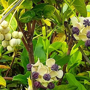 こんばんは~ 散歩道で出会ったアケビの花 雌雄同株 実がなる頃行って見たいと思います 花言葉 才能 唯一の恋