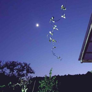 アケビの、蔓と、おつき様。 秋の、感じがしました。 朝晩の 冷え込みで、空気が、すんでいるような。 黄昏どき。