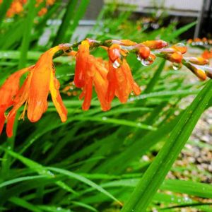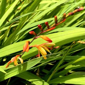 🍃🧡Montbretia (Crocosmia)🧡🍃 先日は緋色のヒメヒオウギズイセンでしたが、こちらの橙色のお花さんも池の脇で一際目立っていました😊🧡✨ 綺麗〜♡(๑˃̵ᴗ˂̵)♡